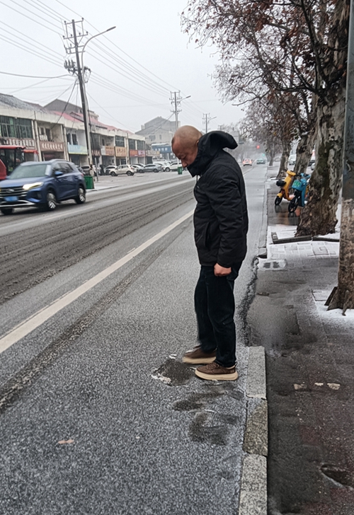 1月20日清晨5:30,益陽湘運(yùn)公共交通有限責(zé)任公司副經(jīng)理王鵬正在319國道結(jié)冰路段進(jìn)行實(shí)地勘查。這是該司應(yīng)對近日雨雪冰凍天氣保障安全運(yùn)輸?shù)呐e措之一。